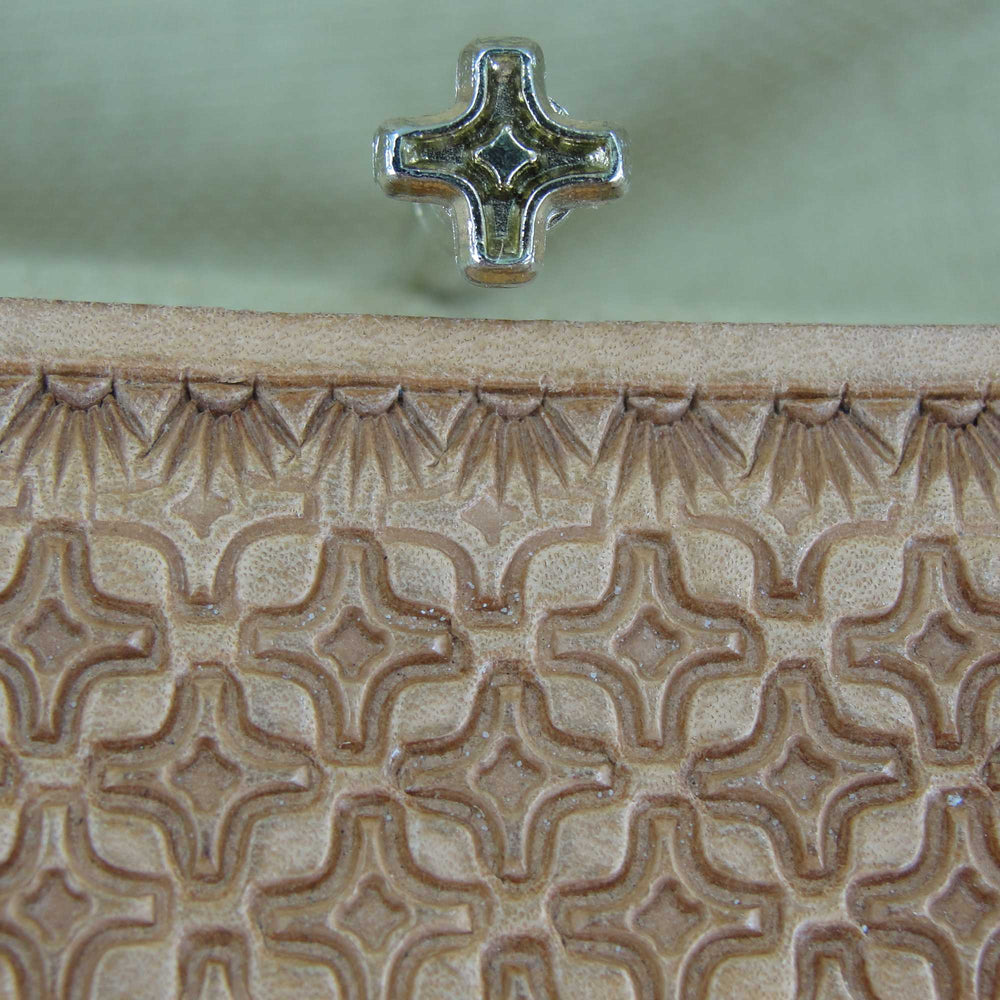 This used Geometric stamp was made by Midas (Kelly Tool Co) and is tool number 152. This tool impression measures 5/16" in width. Stamped on the tool is "Midas 152" and "Kelly Tool Co New Zealand". These old tools do not come available very often, so don't miss your chance to add a great tool to your collection. It still has many miles left in it.