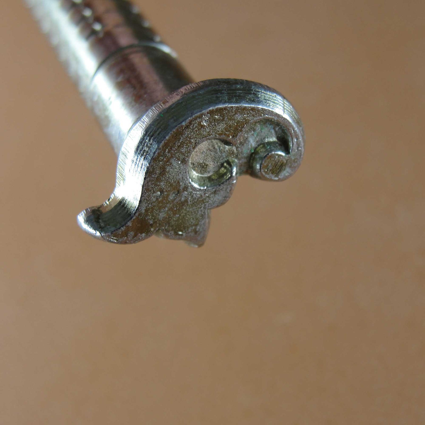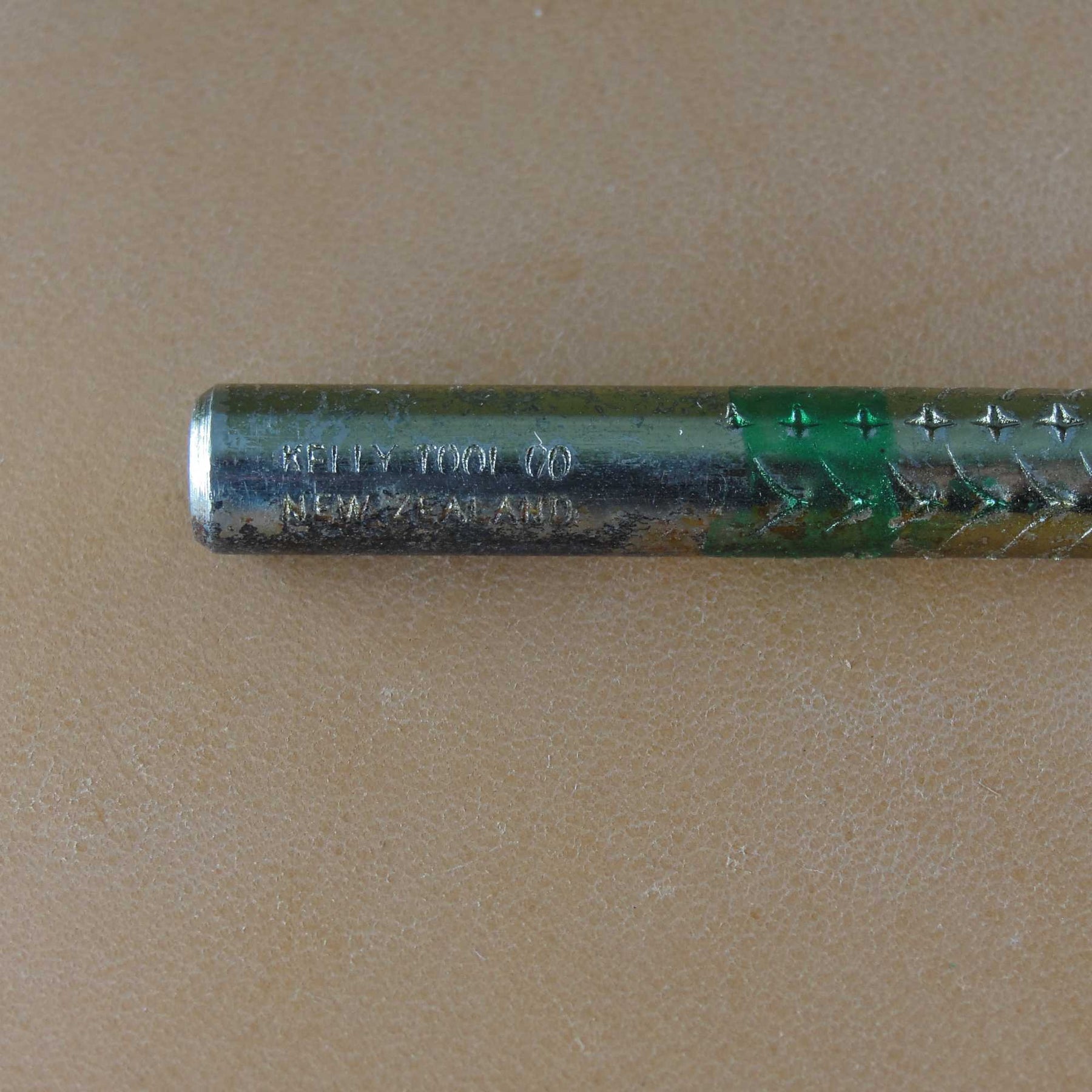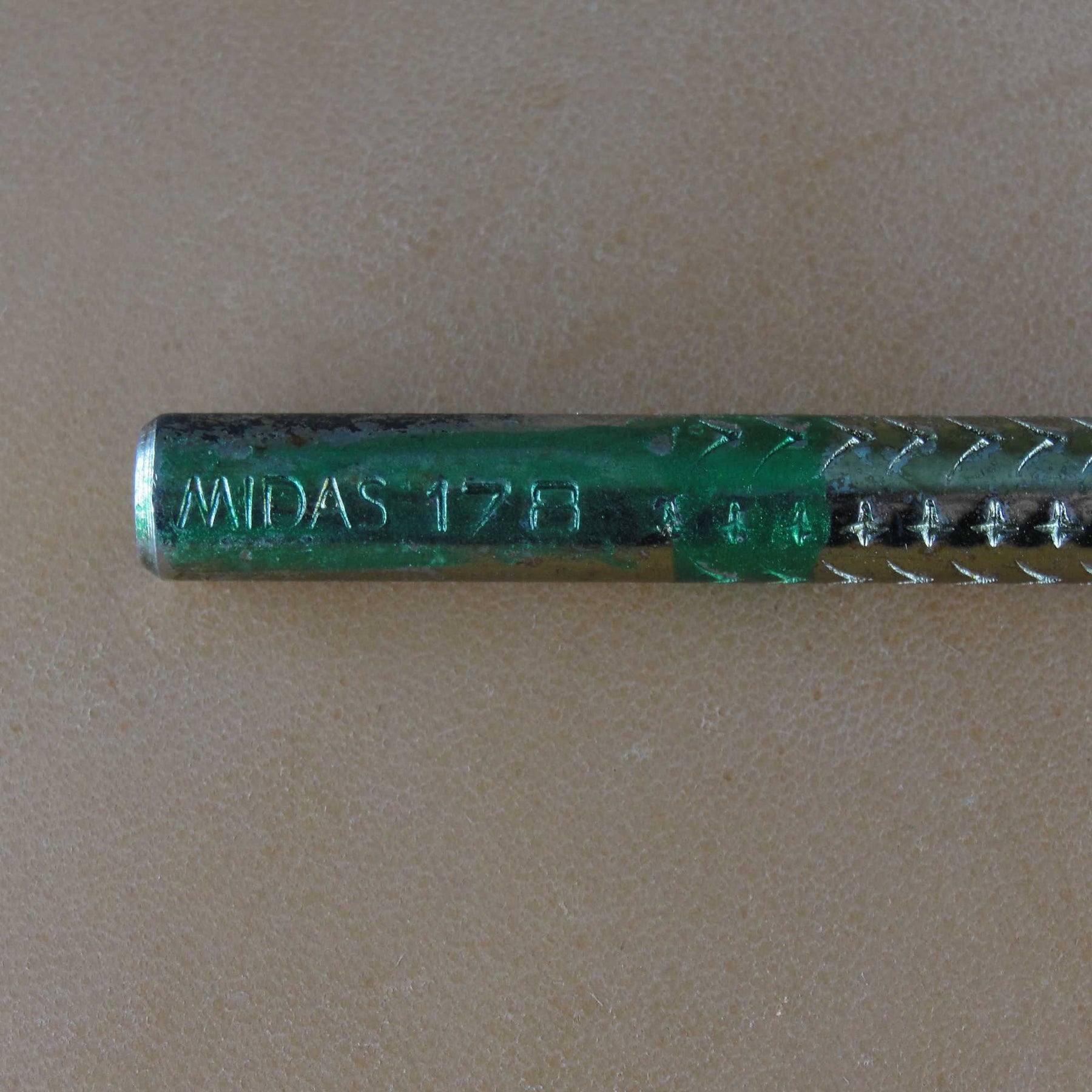 This used Floral Border stamp was made by Midas (Kelly Tool Co) and is tool number 178. This tool impression measures 5/8" in length and 3/8" in width. There is some corrosion and pitting on this stamp, including on the tool face. Stamped on the tool is "Midas 178" and "Kelly Tool Co New Zealand". These old tools do not come available very often, so don't miss your chance to add a great tool to your collection. It still has many miles left in it.