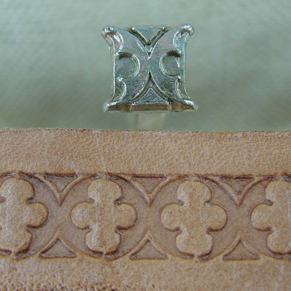This used Geometric stamp was made by Midas (Kelly Tool Co) and is tool number 226. This tool impression measures 7/16" in width. There is some plating chipped off and corrosion on the handle. Stamped on the tool is "Midas 226" and "Kelly Tool Co New Zealand". These old tools do not come available very often, so don't miss your chance to add a great tool to your collection. It still has many miles left in it.