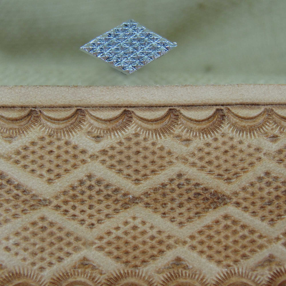 This used Checkered Diamond Geometric stamp was made by RBS (Roth, Barnes, Stohlman). It is tool number 621. The tool measures 1/2" in length and 5/16" in width. This Geometric Stamp is a great example of why many serious leather stampers prefer these vintage tools. The crispness and precision of these tools is beautiful and they are tools you would be proud to own because they perform the way they were intended. These old tools do not come available very often, so don't miss your chance to add a great stamp to your collection. It is ready to perform and still has many miles left in it.