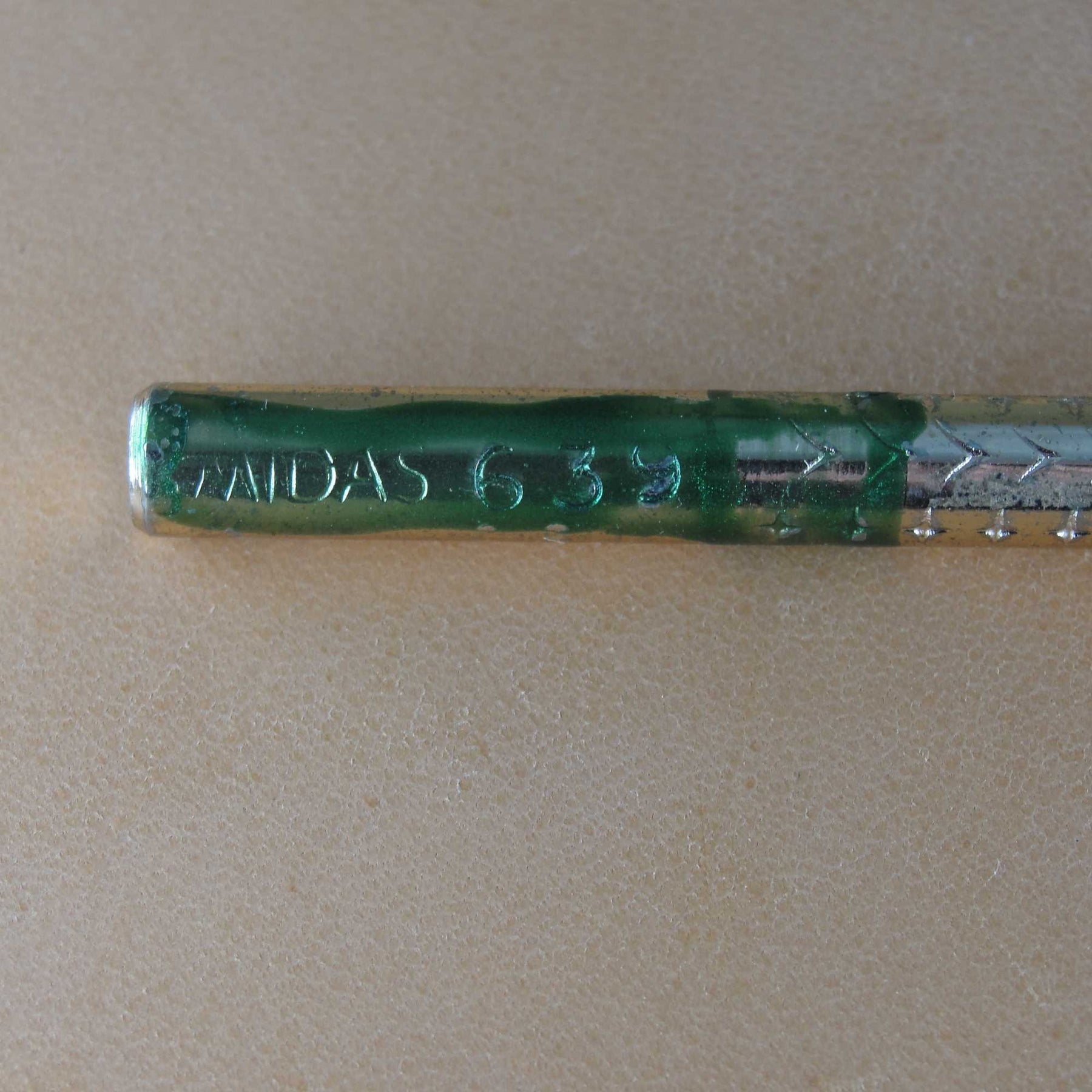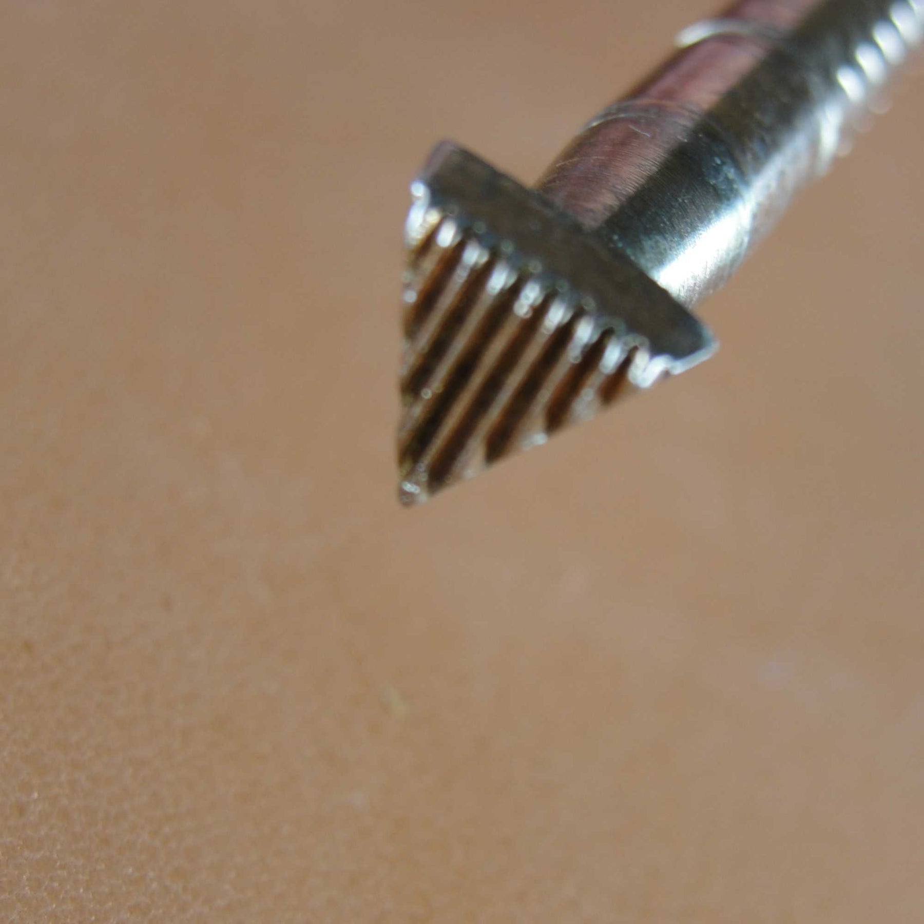 This used Lined Triangle Geometric stamp was made by Midas (Kelly Tool Co) and is tool number 639. This tool impression measures 5/16" in width and 5/16" in height. Stamped on the tool is "Midas 639" and "Kelly Tool Co New Zealand". These old tools do not come available very often, so don't miss your chance to add a great tool to your collection. It still has many miles left in it.
