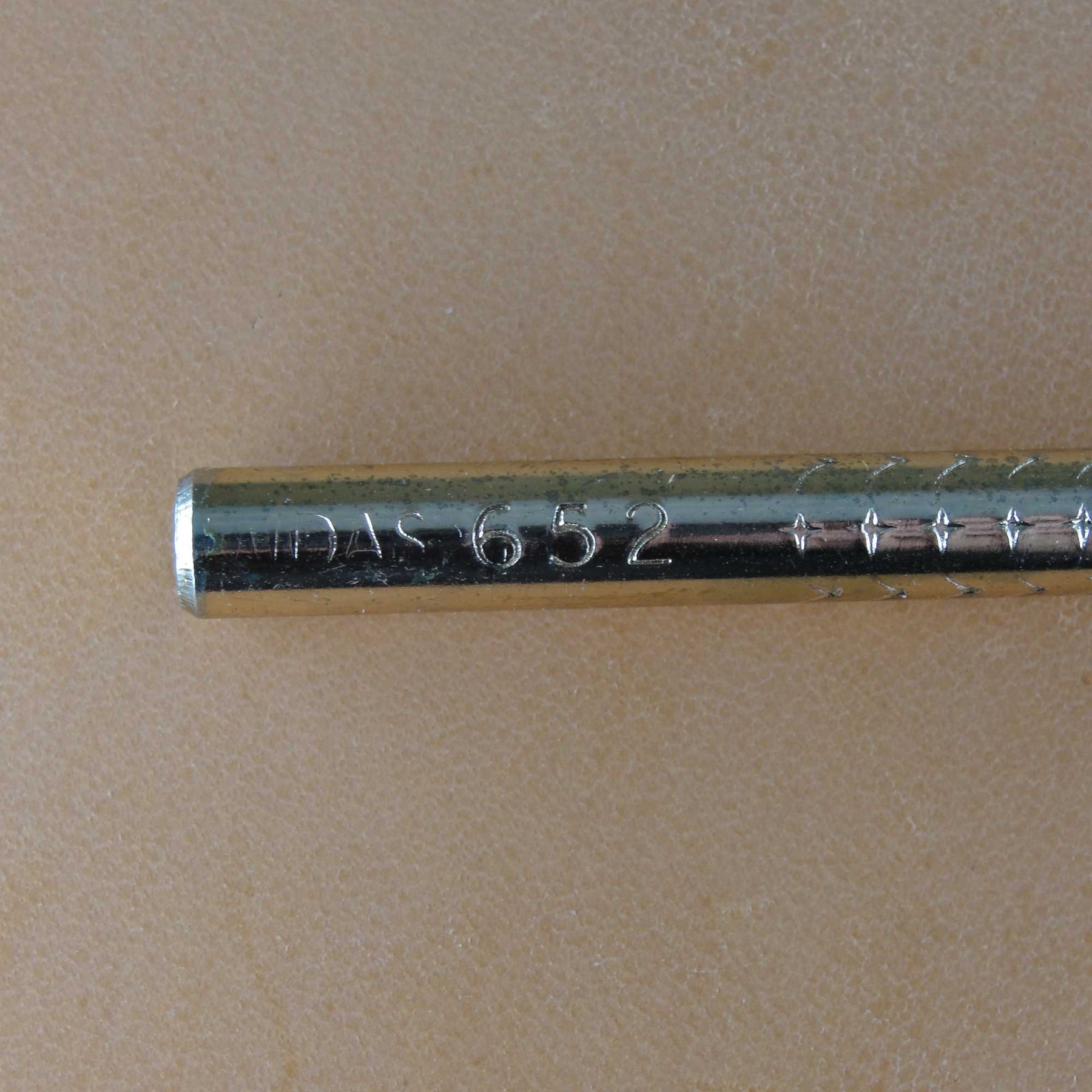 This used Camouflage stamp was made by Midas (Kelly Tool Co) and is tool number 652. This tool impression measures 7/16" in width and 5/16" in height. Stamped on the tool is "Midas 652" and "Kelly Tool Co New Zealand". These old tools do not come available very often, so don't miss your chance to add a great tool to your collection. It still has many miles left in it.