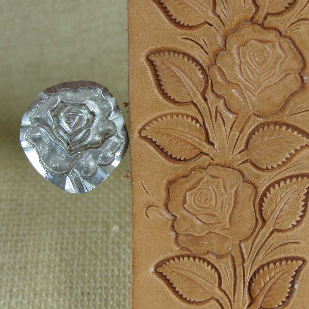 This used Rose Flower stamp was made by Craftool Company prior to 1963. The tool is number 966. This Flower stamp is a great example of why many serious leather stampers prefer these vintage tools. The crispness and precision of this hand ground tool is beautiful and it is a tool you would be proud to own. This tool measures 3/4" in height and 11/16" in width. These old tools do not come available very often, so don't miss your chance to add a great tool to your collection. It still has many miles left in it.