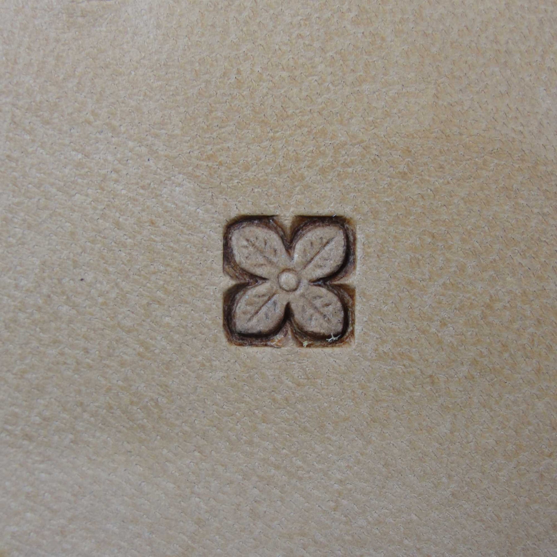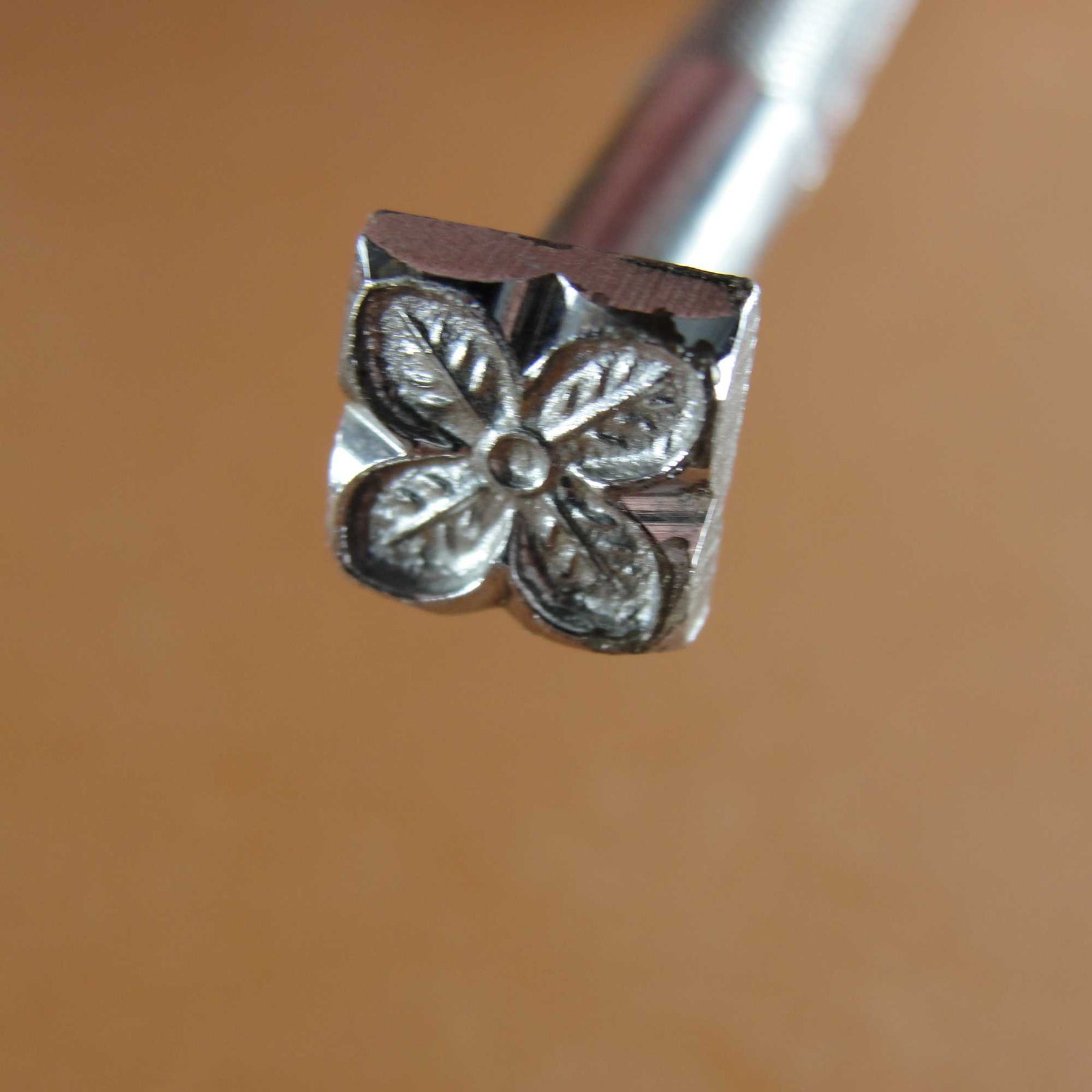 This used Flower Geometric stamp was made by Craftool Company prior to 1963. The tool is number 564. This Geometric stamp is a great example of why many serious leather stampers prefer these vintage tools. The crispness and precision of this hand ground tool is beautiful and it is a tool you would be proud to own. This tool measures 9/32" along each side. There is some chrome chipped off and rust on this stamp, including on the tool face. These old tools do not come available very often, so don't miss your chance to add a great tool to your collection. It still has many miles left in it.