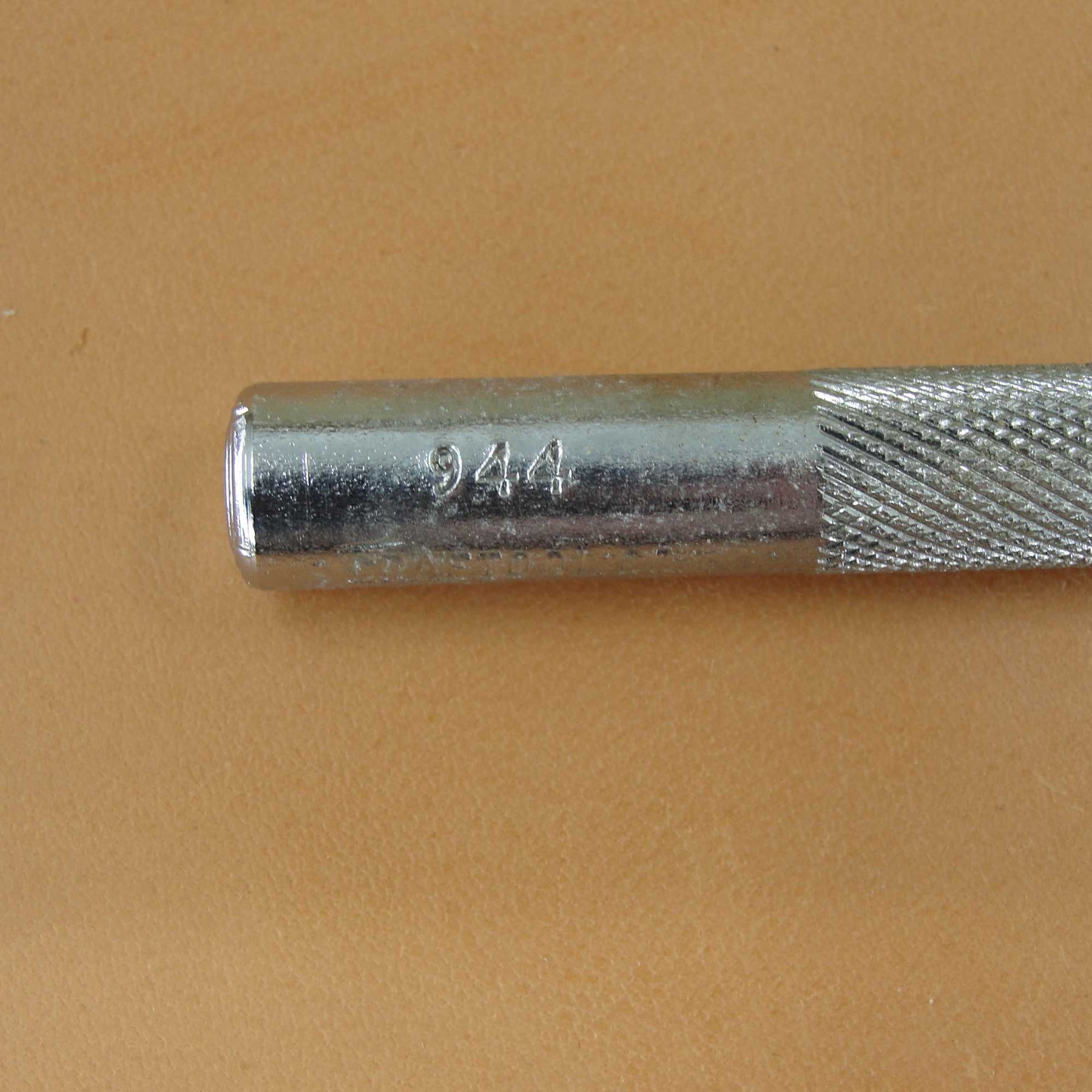 This used Large Smooth Turnback stamp was made by Craftool Company prior to 1963. The tool is number 944. This Turnback stamp is a great example of why many serious leather stampers prefer these vintage tools. The crispness and precision of this hand ground tool is beautiful and it is a tool you would be proud to own. This tool measures 15/16" in width and 7/16" in height. There is some chrome chipped off and rust on this stamp, including on the tool face. These old tools do not come available very often, so don't miss your chance to add a great tool to your collection. It still has many miles left in it.
