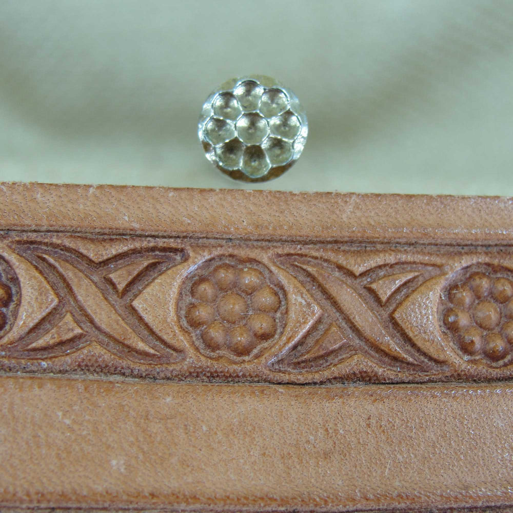 This used Small Flower Center stamp was made by Midas (Kelly Tool Co) and is tool number 121. This tool impression measures almost 5/16" in diameter. Stamped on the tool is "Midas 121" and "Kelly Tool Co New Zealand". These old tools do not come available very often, so don't miss your chance to add a great tool to your collection. It still has many miles left in it.